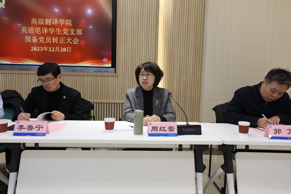 会上,党支部书记李鹏汇报了英语笔译学生党支部创建第二批全国高校“百个研究生样板党支部”的先进事迹。支部党员集体观看《津沽红色记忆》短片。 支部大会审议通过了预备党员曾瑜同志提出的党员转正申请。周红蕾对曾瑜同志光荣成为一名中共正式党员表示祝贺,并为其佩戴党员徽章、颁发政治生日贺卡。此外,周红蕾还结合自身多年教育工作经验,勉励同学们传承革命薪火、赓续红色血脉。