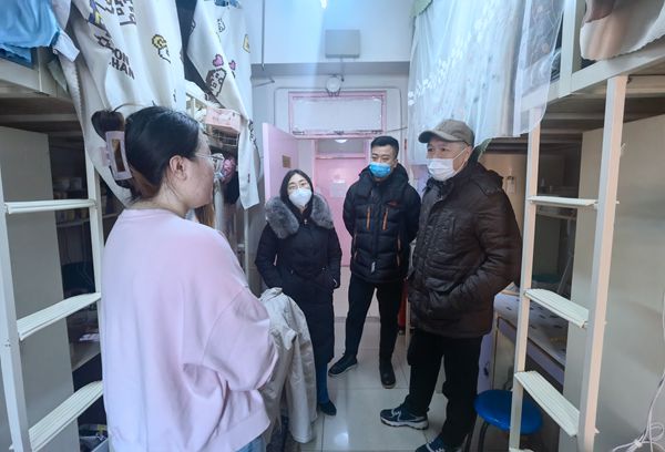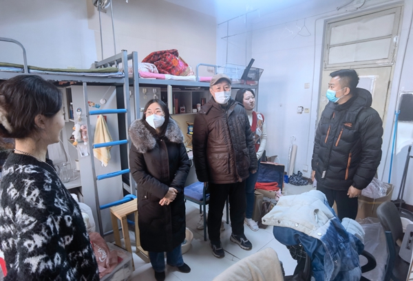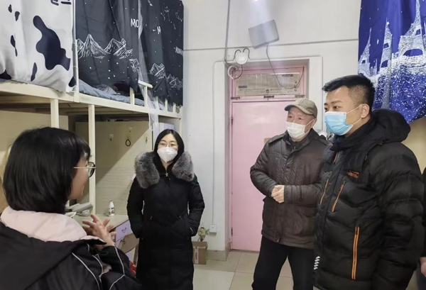 党委书记郭芃老师、党委副书记王瑾老师、团委副书记李鹏老师一起深入学生宿舍,为同学们送去关怀和慰问。